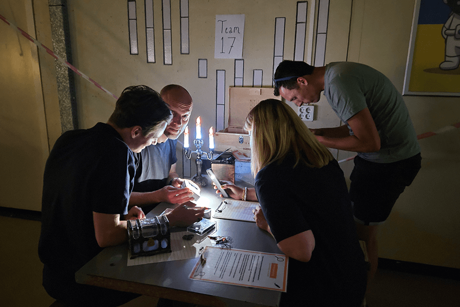 Ben je opzoek naar een leuke activiteit voor je bedrijfsuitje in Groningen? Dan is een escape room box een hele goede keuze! Onze escape room boxen zijn niet alleen in kleine groepen te spelen, maar ook met grotere groepen van 20, 50 of zelfs meer dan 100 personen. Dit kun je doen door allemaal tegelijk te spelen in een grote ruimte, of meerdere kleine ruimtes, of in verschillende rondes te spelen. Dan is de escape room weer gemakkelijk in 15 minuten gereed voor de volgende ronde. Een escape room box haalt veel goede eigenschappen in het team naar boven. Zo leren de collega’s om slim samen te werken, bouwen ze een band op, nemen ze allemaal automatisch een eigen rol aan en versterk je de teambuilding.