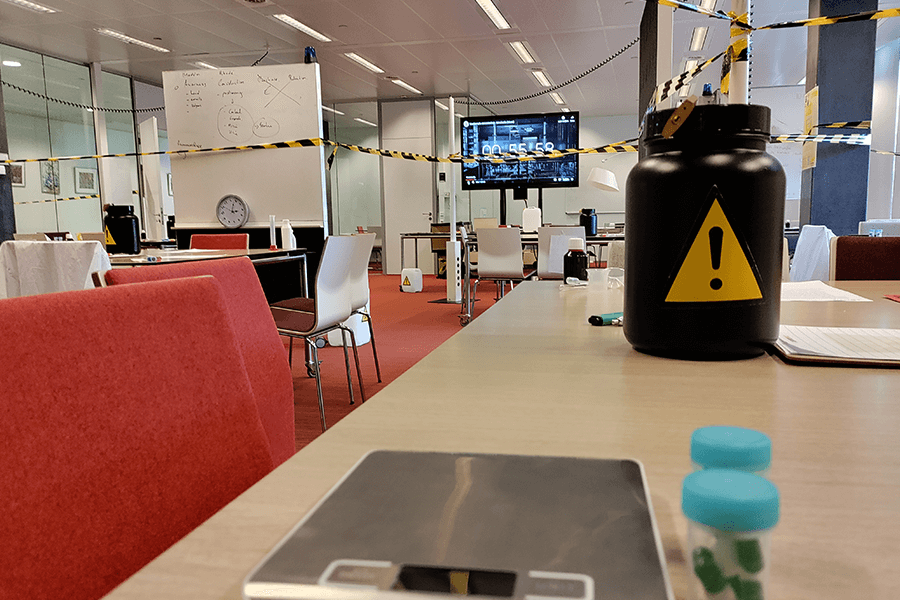Hier geen tijd voor? Bij de 45 minuten variant van de escape room Brandgeheim hebben we de opzettijd met 90% gereduceerd en is de opzettijd ongeveer 1 minuut per escape room.