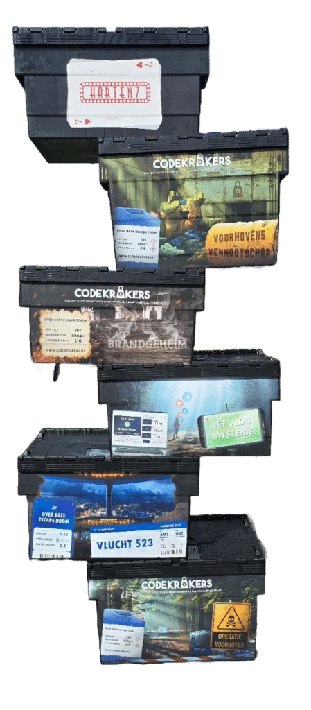 Elke box bestaat uit meer dan 40 onderdelen om jou een unieke en levensechte beleving te bieden. Met zoveel attributen verwacht je vast dat een escape box duur is, maar je kan bij ons escape room boxen huren. Zo kunnen wij een beleving bieden van grote waarde, voor een betaalbare prijs. Door het herbruiken van de spullen kunnen wij meer, en betere materialen bieden in de escape room. Niet alleen duurzaam, maar ook leukere escape room belevingen voor bij jouw thuis!