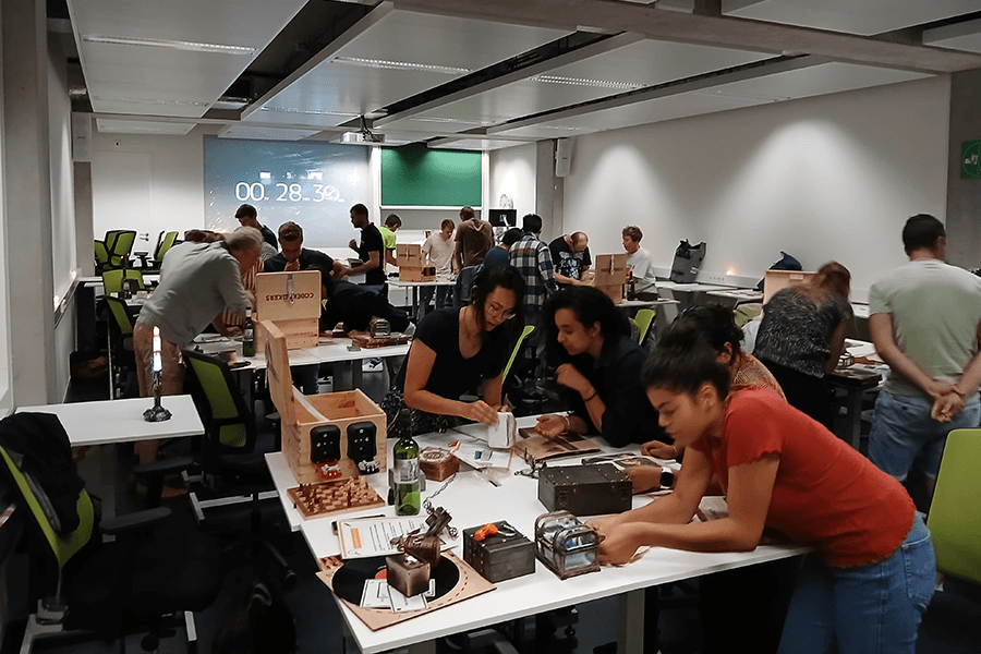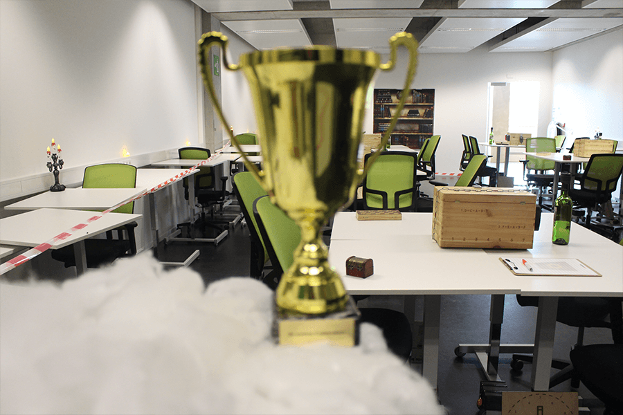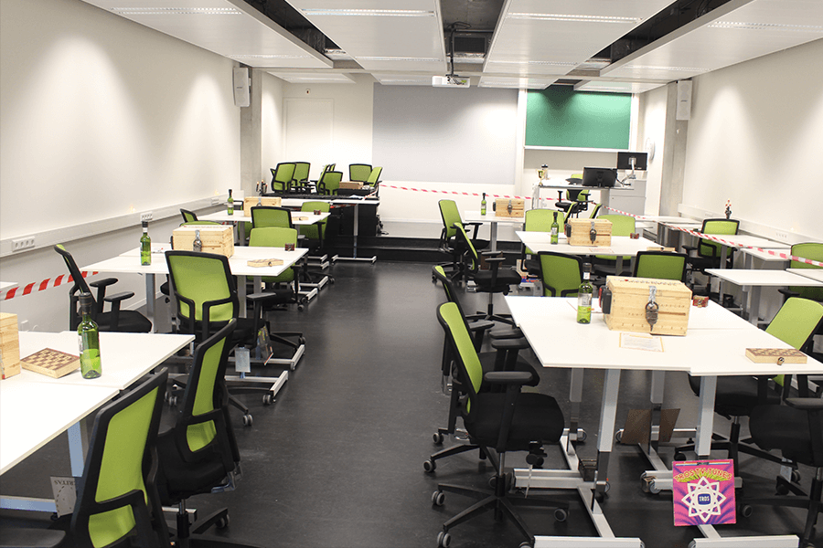 Na een zoektocht op internet voor een originele activiteit voor ons uitje zijn we bij de escape rooms van Codekrakers uitgekomen. We zochten een activiteit op locatie, namelijk de universiteit, voor een groep van 30 – 40 personen, welke in teamverband gespeeld wordt en zowel voor ons Nederlandstalige als Engelstalige collega’s te volgen is. Wij wilden graag allemaal tegelijkertijd spelen en een competitie-element toevoegen, dit was mogelijk door in teams in één collegezaal te spelen. Voorafgaand (via mail en de opbouw) en tijdens de activiteit (uitleg en support) hebben we genoten van een vlotte communicatie, en de activiteit werd erg gewaardeerd binnen onze diverse groep (man/vrouw, jong/oud, fysiek niet uitputtend).